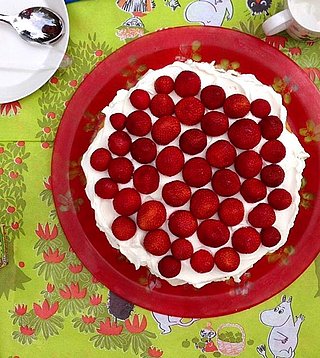 Leivo normaali kakkupohja, leikkaa kolmeen osaan, kostuta esim. mehulla tai alkoholittomalla valkoviinillä (sopii erityisen hyvin mansikoiden makupariksi), täytä runsaalla kermavaahdolla tai rahkakermavaahdolla (mausta vaniljalla) ja mansikkasiivuilla, koristele päällinen kermavaahdolla ja mansikoilla.