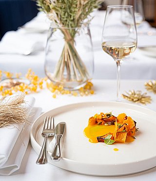 Grauburgunder (Pinot Gris) trocken, esimerkiksi Weingut Alexander Gyslerin Grauburgunder trocken tai Kühling-Gillot Grauburgunder. Myös valkoinen Spätburgunder käy ruokaan hyvin; esimerkiksi Weingut Pflügerin Blanc de Noir Pfalzista.